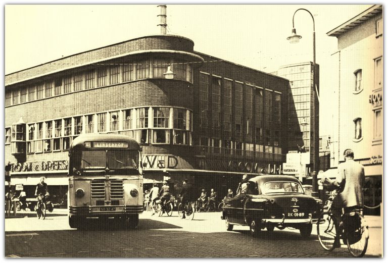 Kruispunt de Graaf, oversteken naar V&D [1953 ]