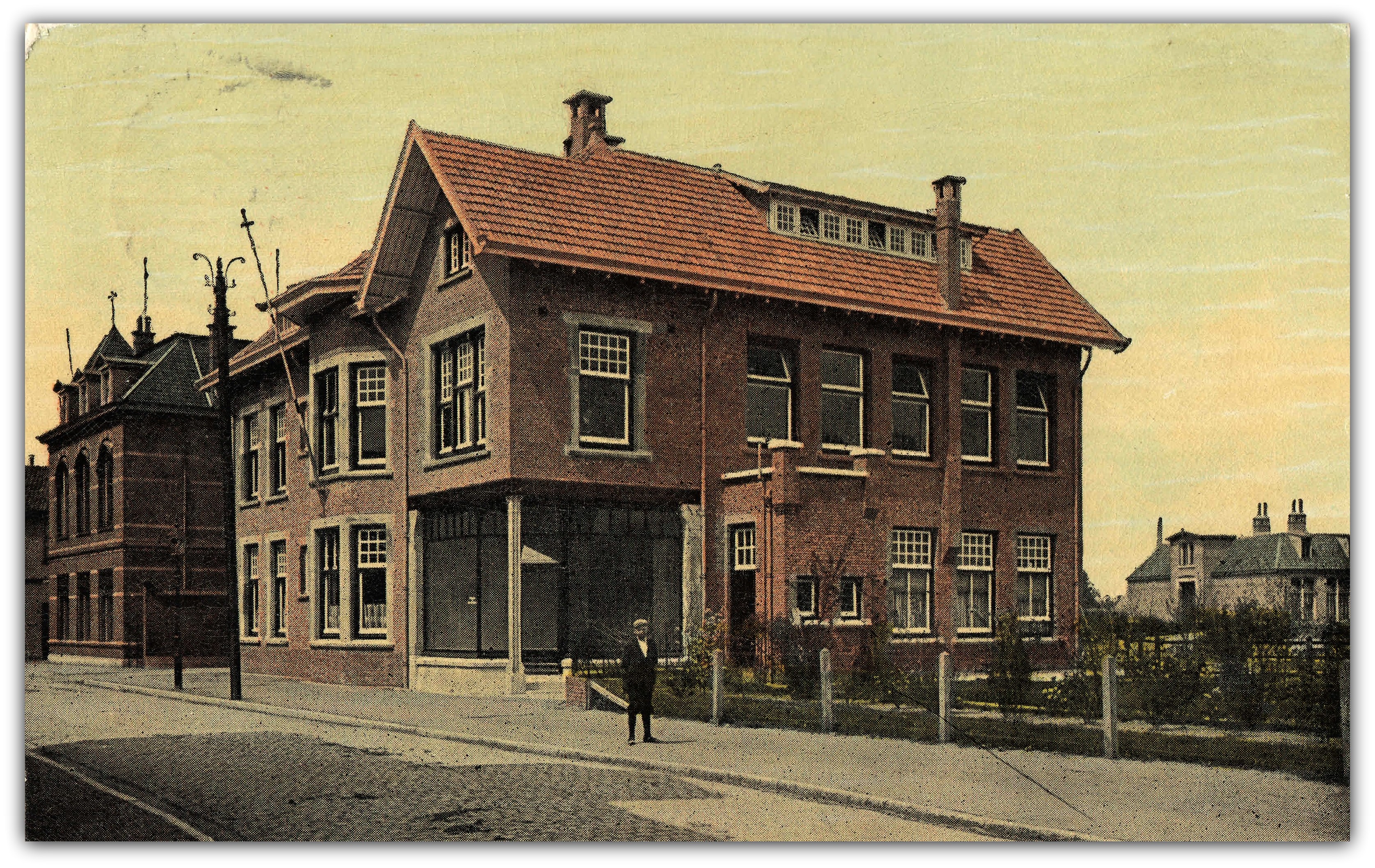 Uiterst rechts op de tekening staat nog net een woonhuis dat nog steeds aanwezig is. [zie de foto rechts van de tekening,  In het middengedeelte van de tekening is een treinstel met stoomlocomotief te zien  dat op weg is naar het station in Enschede.