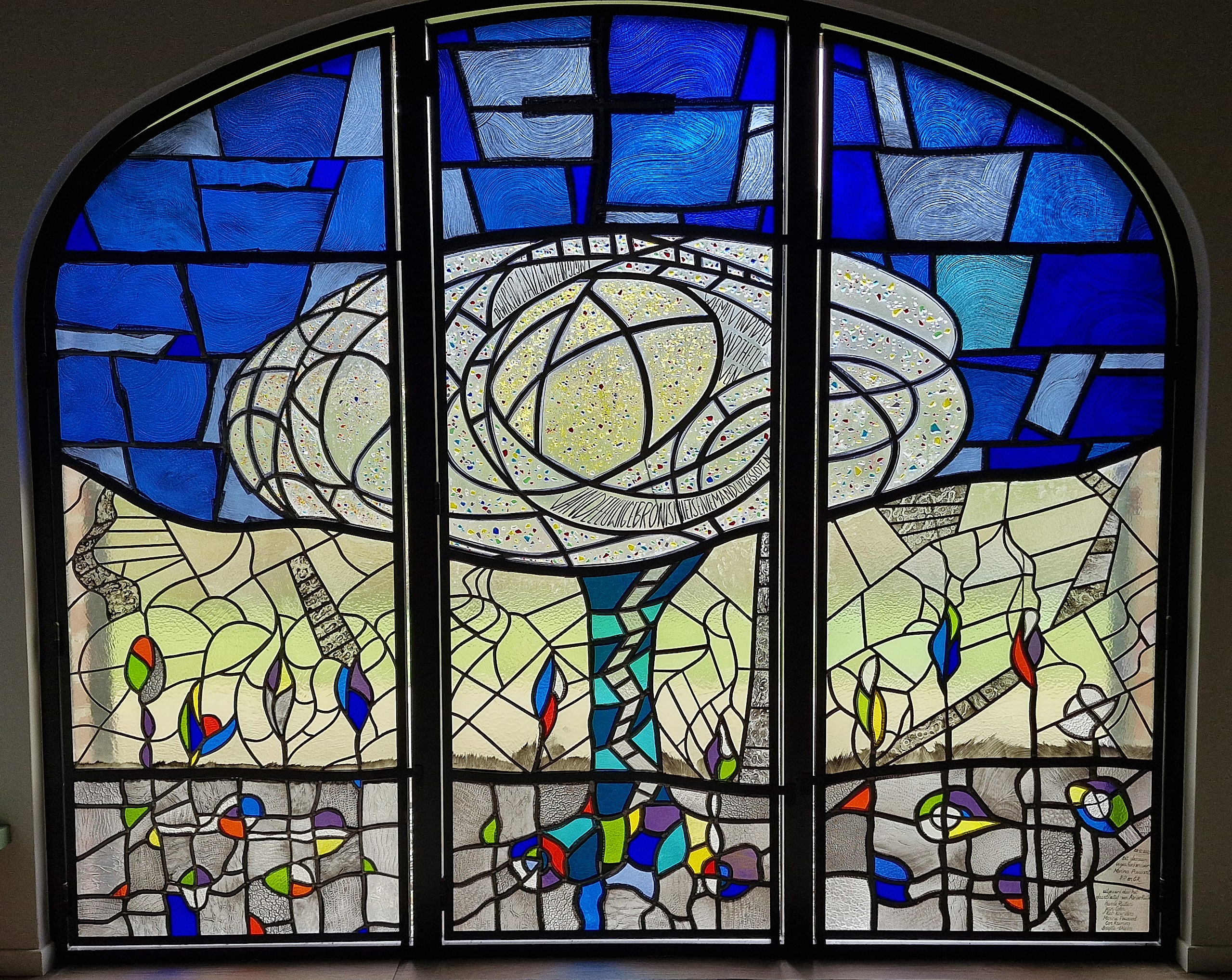 Het raam vertelt meerdere verhalen. Genesis is er in te vinden maar ook de Jacobsladder. De levensboom kun je ook zien als een labyrint van een eindeloze lijn. De kijker kan zijn eigen verhaal zoeken of maken.